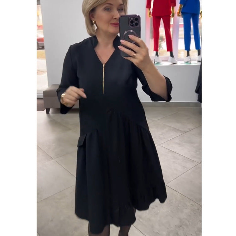 HIGH-QUALITY FABRICS- Crafted from high-quality fabrics, the black v-neck dress for women promises both comfort and durability. The soft material feels luxurious against the skin, making it perfect for all-day wear. Designed to drape beautifully, the fabric accentuates the elegant silhouette of the dress while offering breathability and movement.